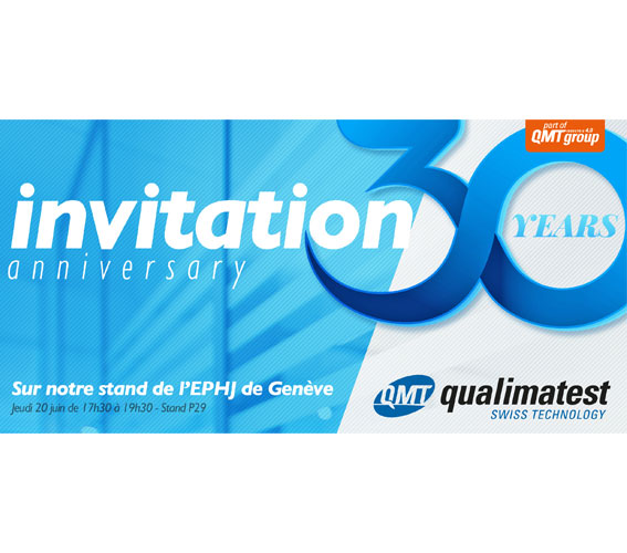 Depuis la fondation de Qualimatest en 1989, des centaines de systèmes ont été développés, installés et maintenus dans le monde entier pour une clientèle renommée dans les industries horlogères, médicales, automobiles et ferroviaires. Nous fêtons aujourd'hui nos 30 ans et vous proposons de vous joindre à nous pour un événement sur l’évolution du rôle de l’opérateur dans le contrôle qualité de demain durant lequel Prof. Jacques Jacot nous donnera sa vision. Le programme complet, les informations pratiques ainsi que le formulaire d'inscription sont disponibles sur la page de nos 30 ans.