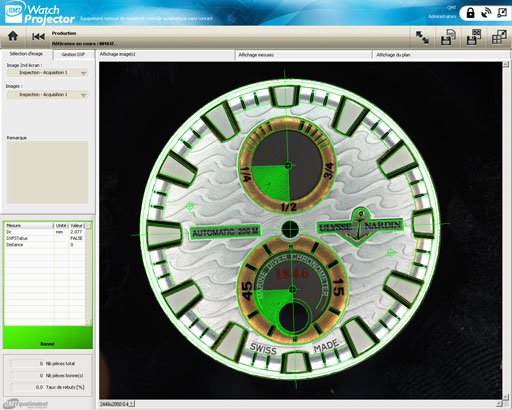 Le WatchProjector permet le contrôle automatique de pièces horlogères par caméras (dimensions, géométries, assemblages, aspects, …). La technologie de mesure optique est basée sur la plateforme performante QMT Vision Inspector. L’ergonomie de l’équipement est spécifiquement adaptée à l’industrie horlogère tout en garantissant une rigidité élevée pour atteindre le haut niveau de précision de mesure recherché.