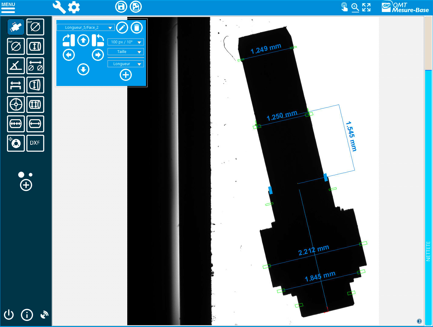 Le qmtvline est particulièrement adapté à l'équipement qmtprojector-100 pour permettre la mesure rapide et précise de pièces décolletées.